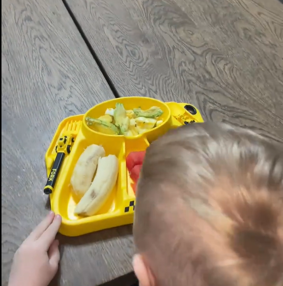 Antes tenía que darle yo todo. Ahora usa sus cubiertos y se siente mayor. Los compartimentos ayudan mucho porque no mezcla la comida.